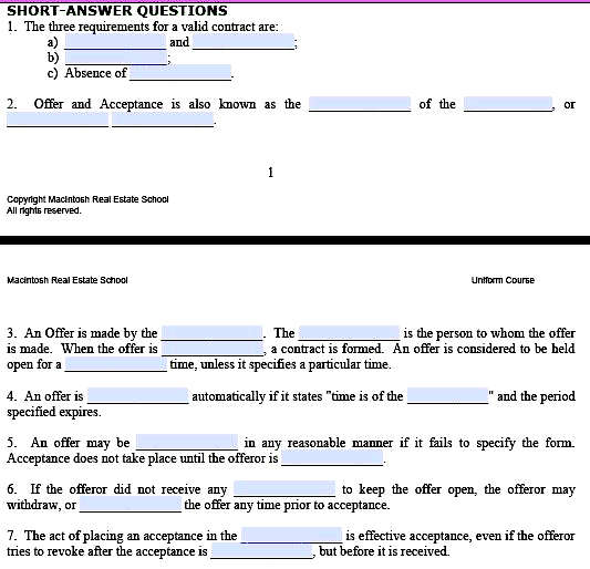 Want to see how the MacIntosh Method means success for our students? Click each of the images below to display a brief example of the sections in the study materials (whether you choose interactive or printed. The content is the same - you just have a choice of the method of delivery.) These samples represent the first page from each of sections in the first chapter ("Contracts") in the first course ("Uniform" Law and Practice).