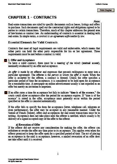 the state license exam. Naturally, the text of that topic comes first - in this example, it is the first page from Chapter 1 ("Contracts"), one of the most important aspects in